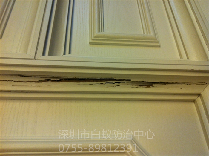 2)散白蚁危害房屋建筑一般为水平发展方向。且危害多集中于门框